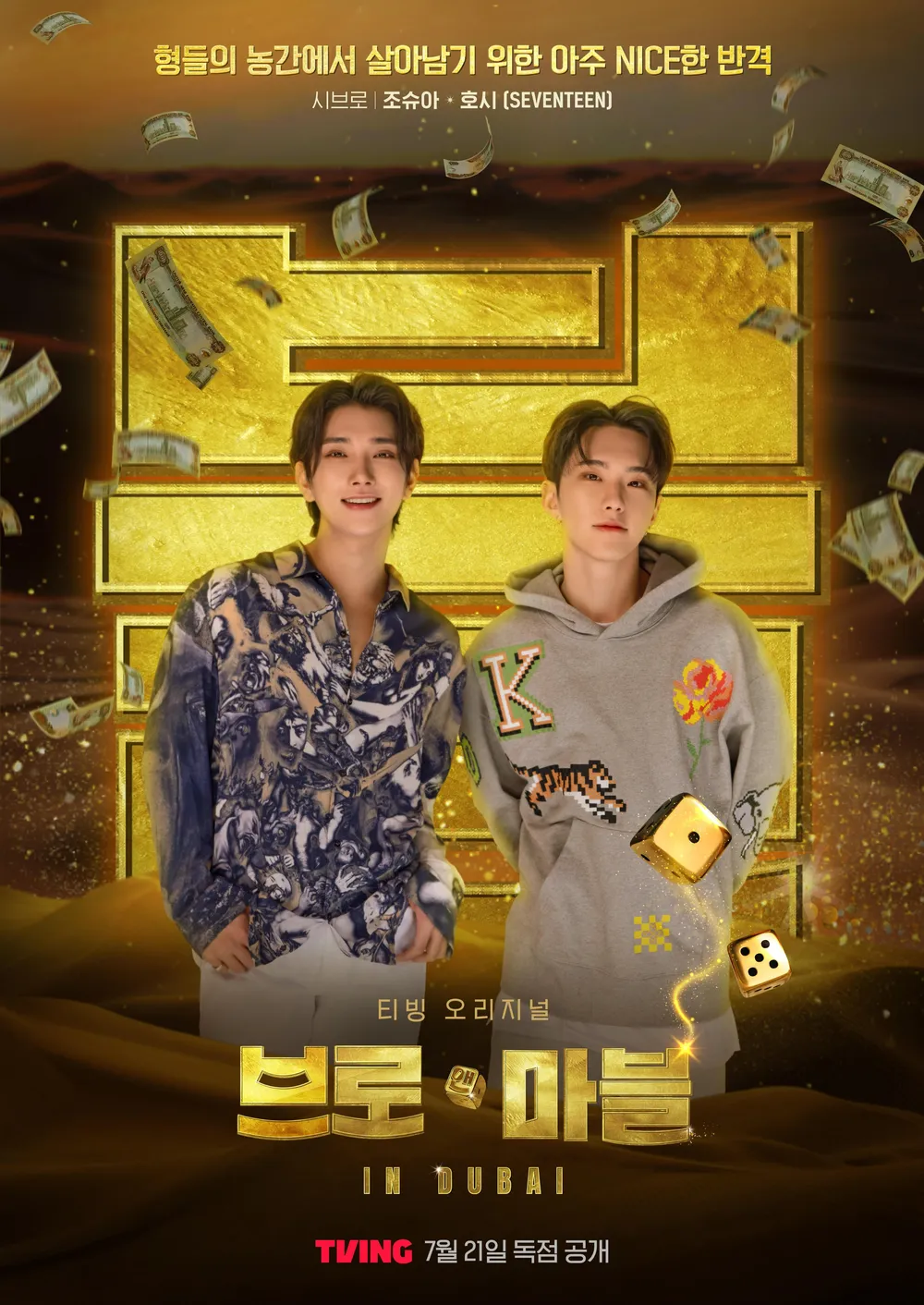 韓綜《Bro&Marble in Dubai杜拜大富翁》是一檔重金前往杜拜拍攝的真人版大富翁,請來了李昇基、Super Junior圭賢、李東輝、曹世鎬、柳演錫、池錫辰、和SEVENTEEN的Joshua、Hoshi,一邊享受杜拜景點一邊豪賭!把大富翁遊戲搬來現實中的設定相當吸引人,配上華麗的陣容讓《Bro&Marble in Dubai杜拜大富翁》的收視率節節高升。而這也是SEVENTEEN成員Joshua、Hoshi首次成為綜藝節目的固定班底,兩人在節目中綜藝感滿滿,喜歡SEVENTEEN的朋友們千萬別錯過這檔綜藝~