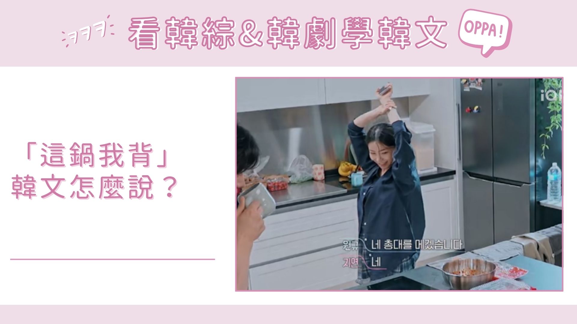 🙋🏻♀️안녕, 여러분~我們常常使用的背鍋,大家知道怎麼用韓文說嗎?這週追換乘進度的時候就立刻看到這個用法,趕快來跟大家分享~
