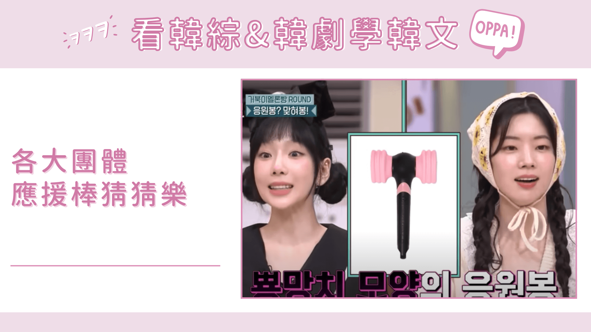 韓國團體幾乎都會推出專屬應援棒/手燈,讓粉絲們在演唱會等場合使用,以耀眼的燈光為偶像進行應援。而通常應援棒會融合團體特色或是使用代表色,也會有自己的名字。這期《驚人的星期六》就特別挑選了幾個應援棒,讓現場來賓憑著藝人代表特色或外觀猜應援棒的名字,真的非常有趣!各位追星族也一起來測驗看看吧!