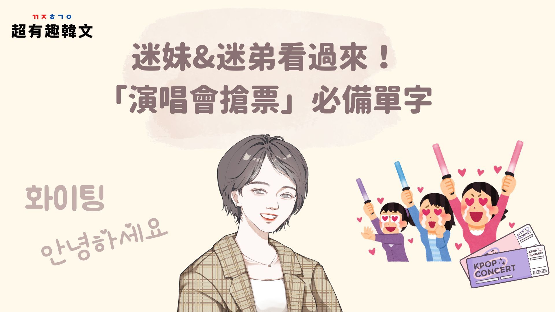 大家的偶像有參與到台灣造咖大賽嗎?今年好多韓星來台辦演唱會、見面會...那大家搶票運還好嗎~~~上次我本人想去IU演唱會,但完全買不到票嗚嗚嗚~是不是沒有大喊三聲李泰民才會沒搶到😭那大家對於搶票相關的單字知道多少呢?我們一起來看一下有哪些跟搶票相關的韓文單字吧!