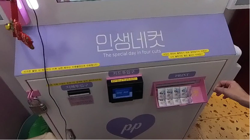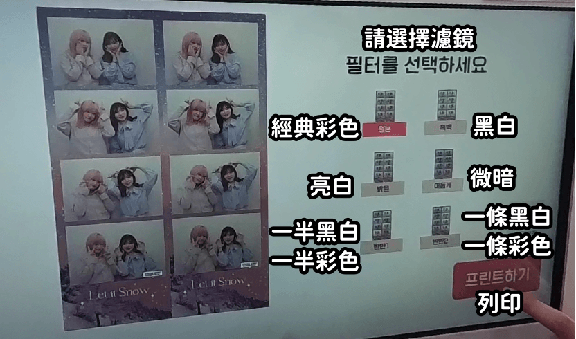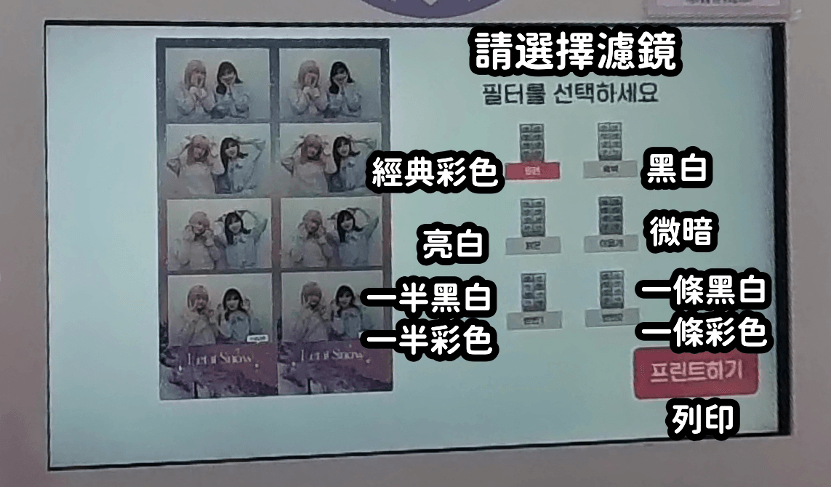 照片出爐啦!日後大家來韓國玩別忘了也來體驗時下最流行的拍貼機,拍張「人生四格」留下美好的紀念。