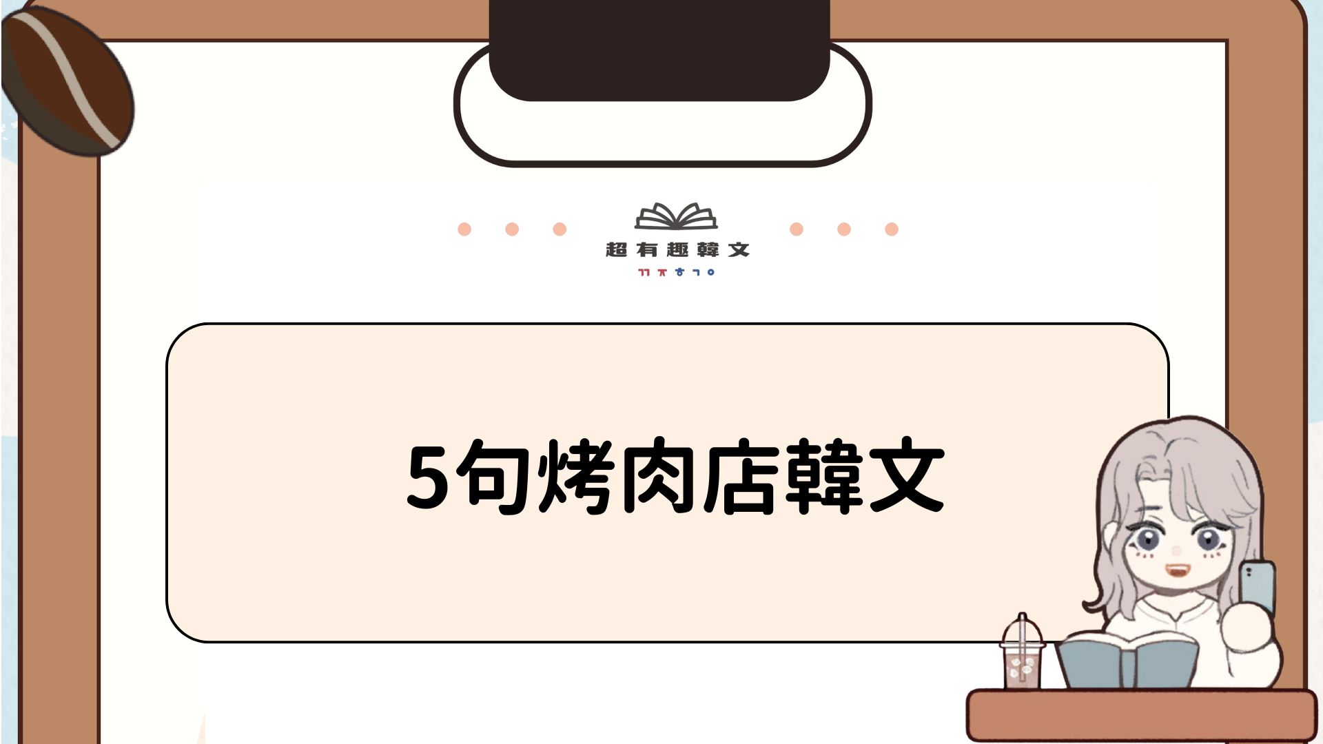 韓國必吃美食之一就是韓式烤肉啦!一想到香噴噴的豬五花就口水直流,完全抵擋不了🤤想知道要怎麼用韓文請店員換烤網、續生菜嗎?這篇將會用到的韓文單字整理給你囉!趕快看下去吧,一起開心學韓文!