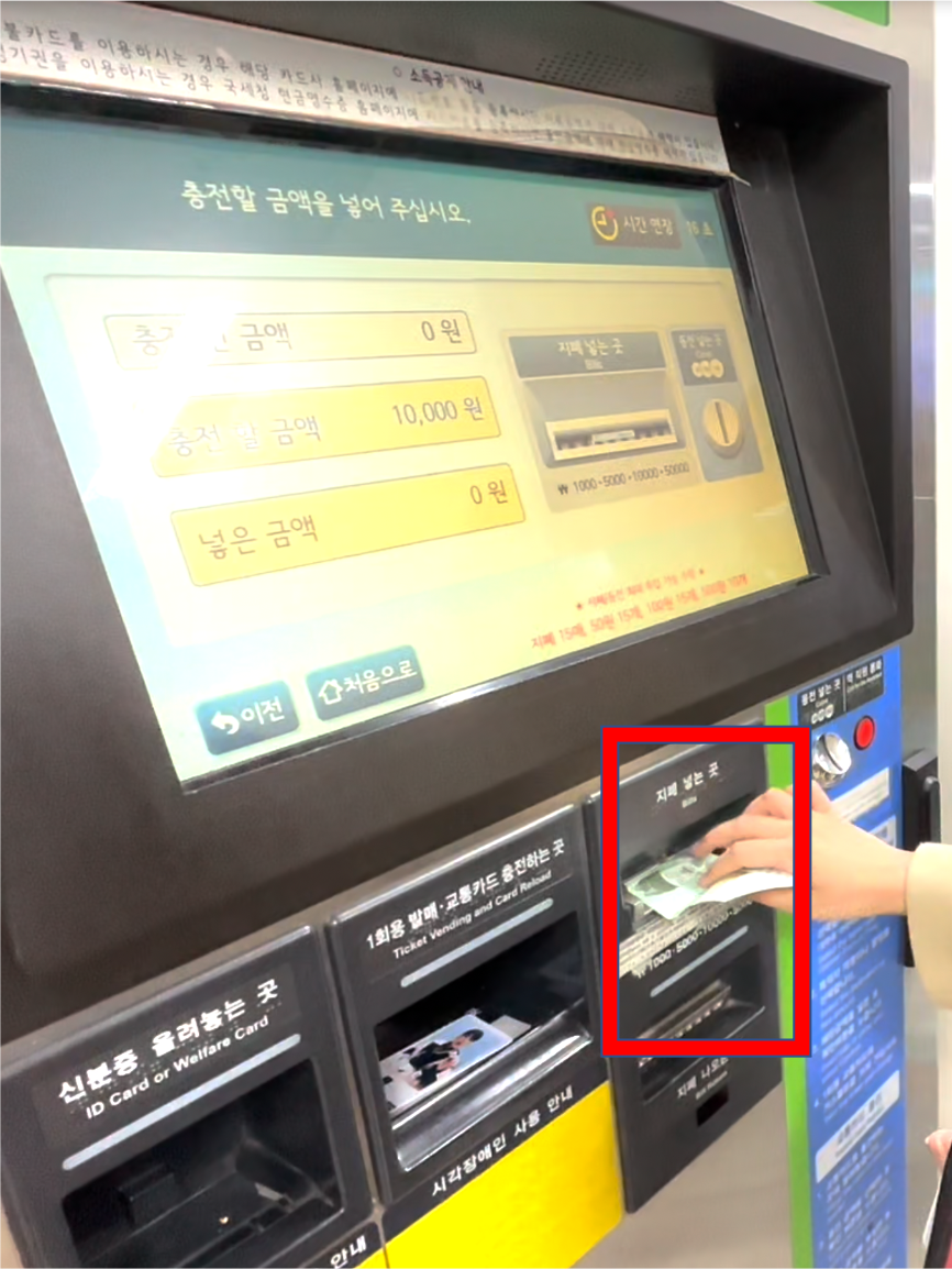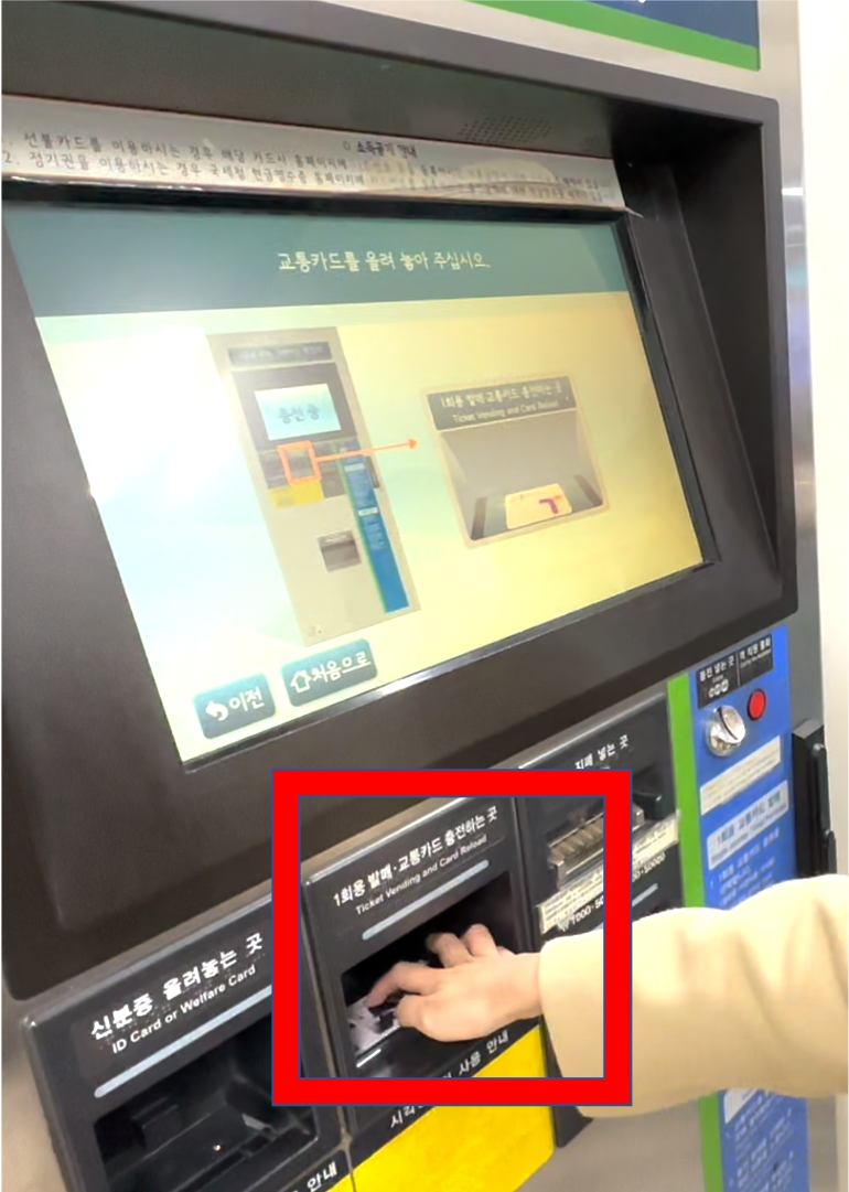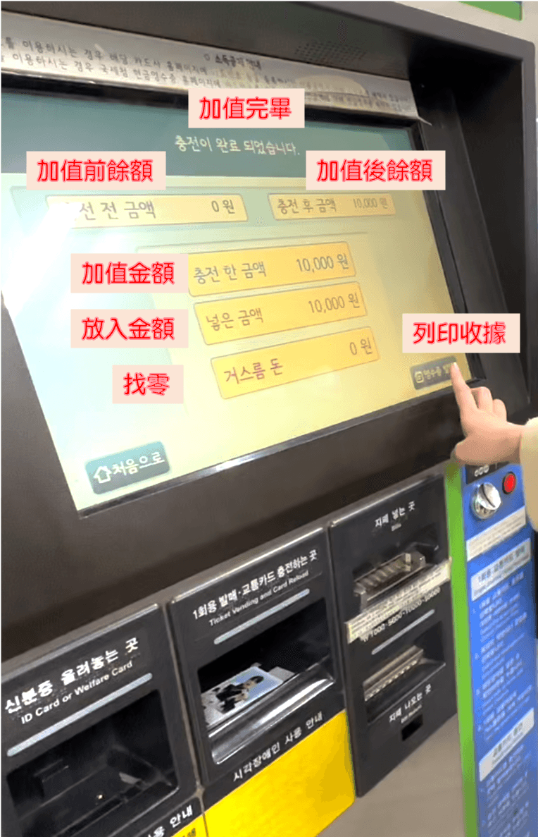 前面有提到NAMANE卡也可以當成Tmoney交通卡使用,但要另外加值,這邊我們就要來為大家示範啦~加值交通卡的機台上一樣都有中文,對觀光客可以說是非常友善,不用怕看不懂喔!