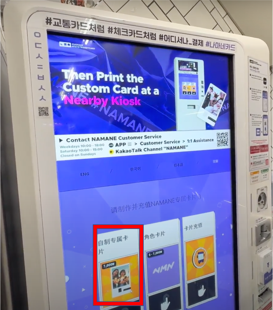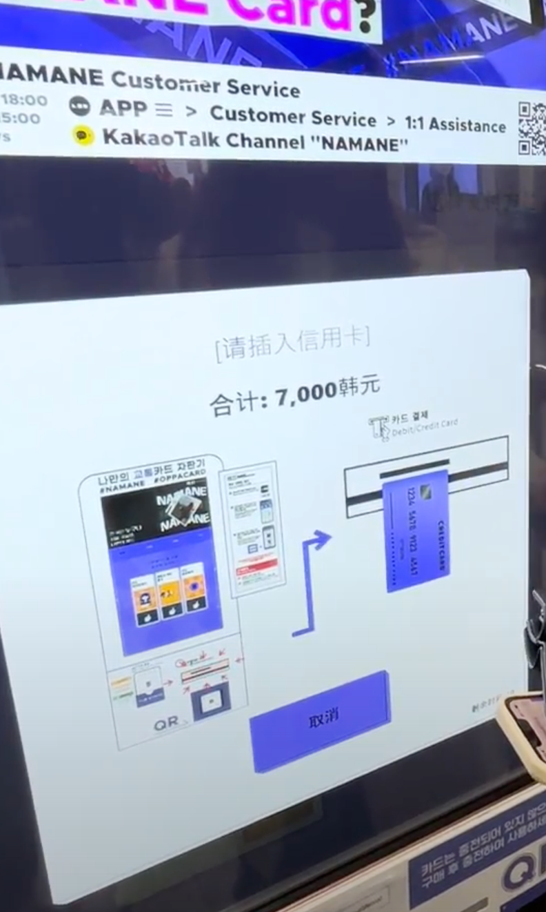 一張NAMANE卡是7000韓幣,插卡後等機台讀取一下。