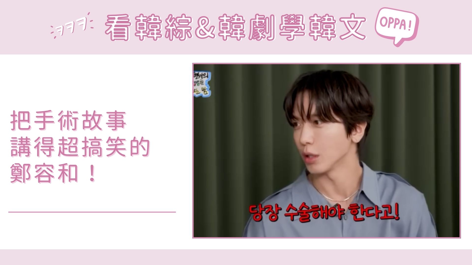 最近很疲憊的各位一定要來看看這篇!!鄭容和上節目分享自己去做手術的故事,描述得非常仔細,而且超搞笑🤣一下瘋狂自拍留念、一下覺得自己是韓劇主角,內心很多小劇場~真的太可愛了啦!今天就用容和的片段來學韓文吧👍