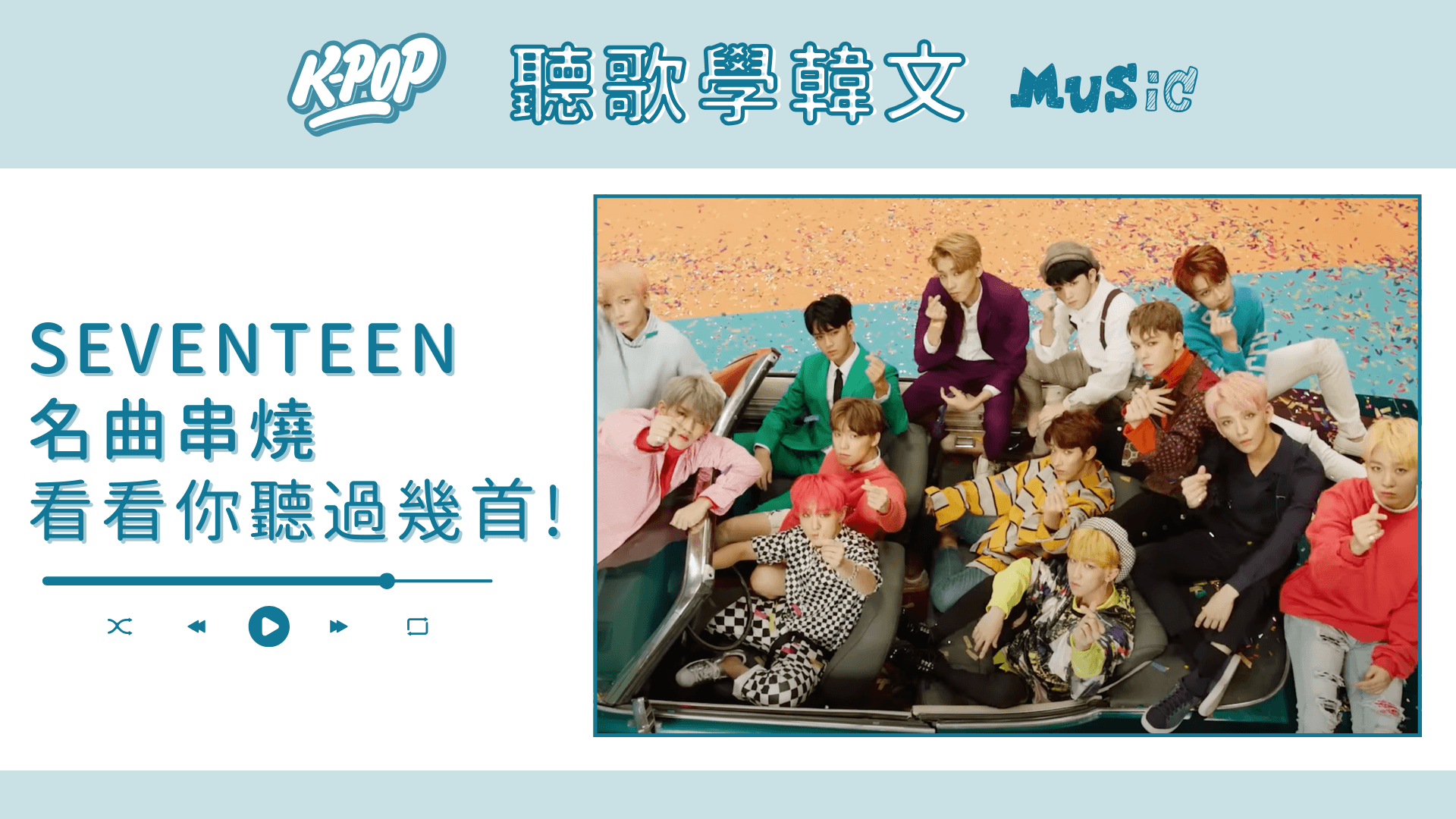 各位克拉看過來~~今天的經典名曲串燒輪到出道多年的百變男團SEVENTEEN!從抒情歌到快歌都能完美駕馭,真的超級全能🩵🩷現在就來看看這些歌裡面有沒有你心目中的神曲吧!