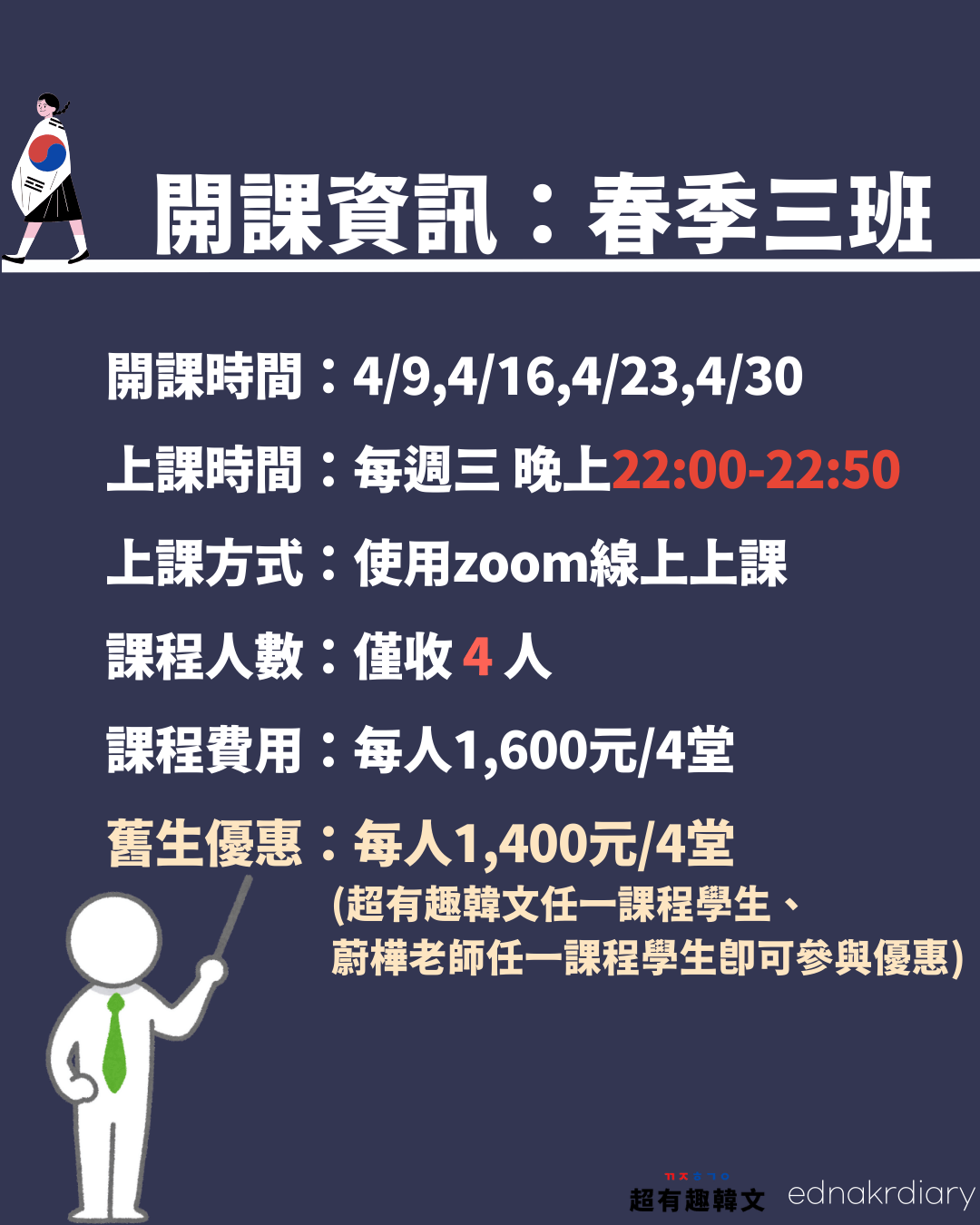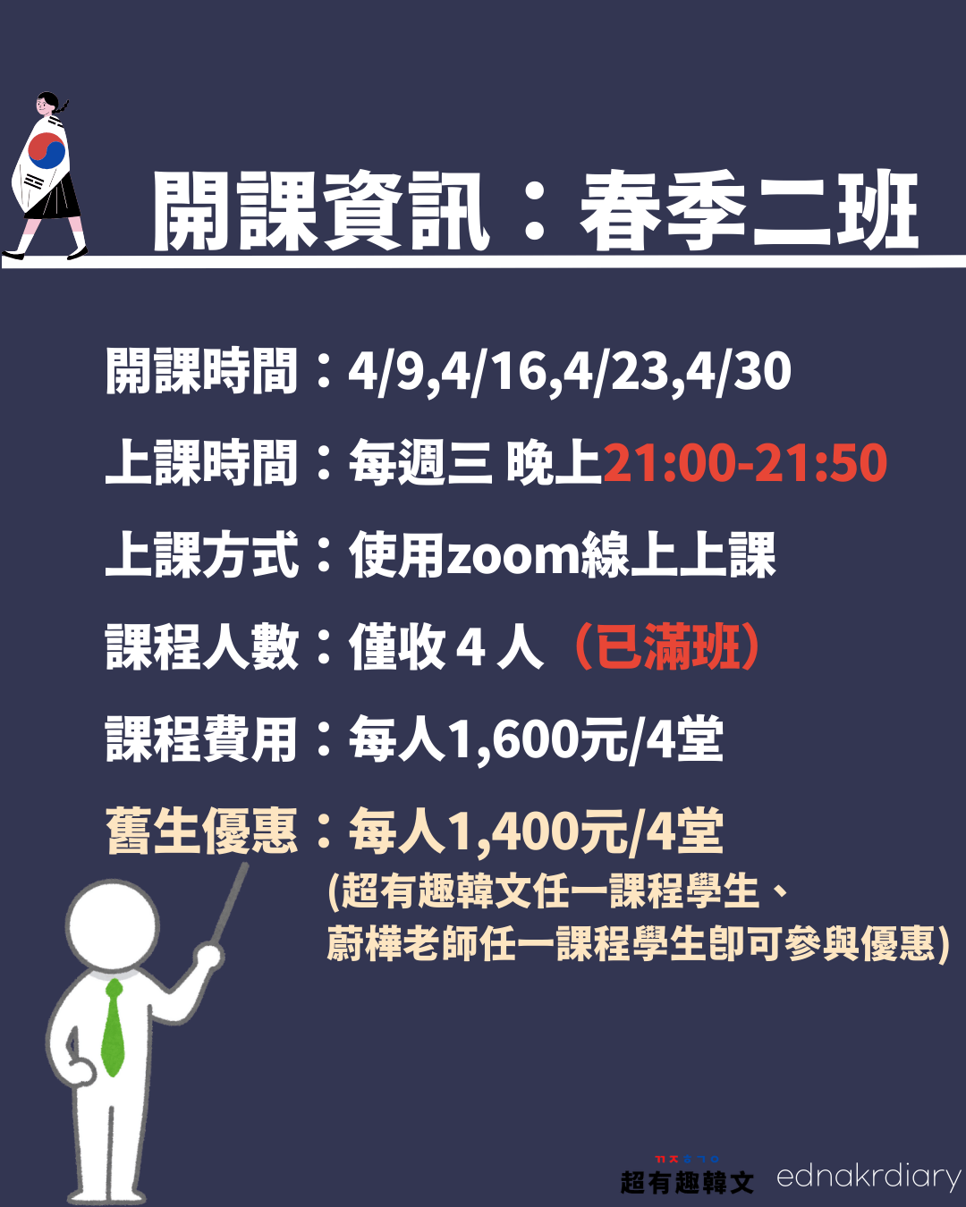 (超有趣韓文任一課程學生、 蔚樺老師任一課程學生即可參與優惠)
