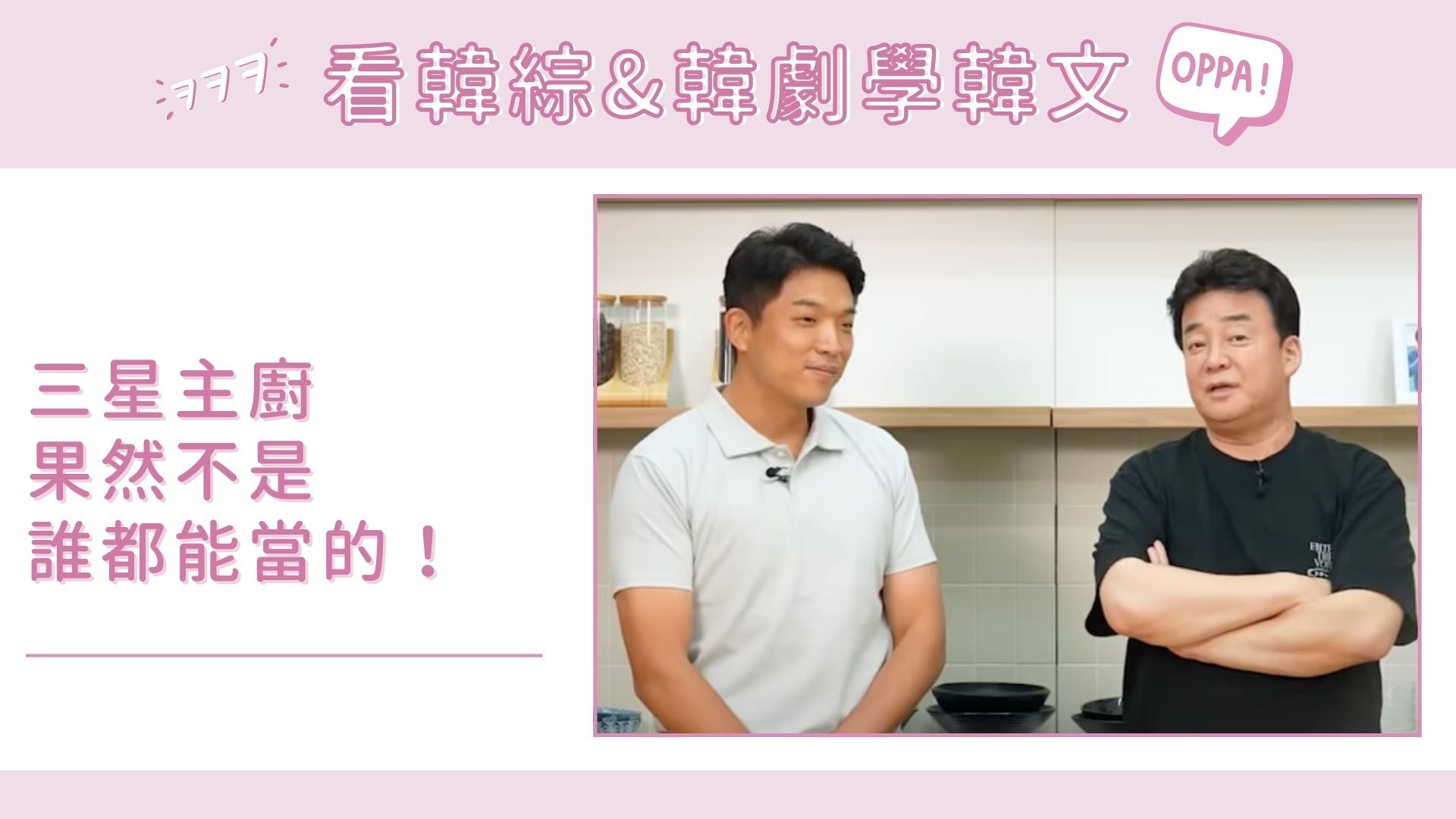 影視韓語影視韓語|三星主廚果然不是誰都能當的!2024-11-07Yunnie 近期人氣超高的韓國節目《黑白大廚》裡請來了兩位評審,分別是家喻戶曉的白種元老師和米其林三星主廚安成宰。兩人對料理的評價標準截然不同,經常有意見分歧的時候,每次看他們鬥嘴都超有趣!🤣 這次在影片中又吵起來了,大家更支持誰的說法呢~~ 本篇單字: 반찬 小菜 떨어트리다 使…淘汰、掉下 피자 披薩 도우 餅皮 비교하다 比較 간 味道、調味 짜다 鹹 짭짤하다 偏鹹 백반집 家常菜餐廳 패티 漢堡排 열띠다 激烈 까다롭다 難搞、挑剔 #看韓綜學韓語#韓語單字