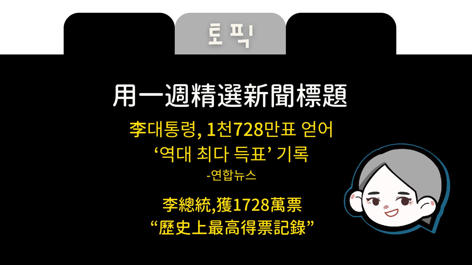 🙋🏻♀️안녕, 여러분~昨日韓國大選正式落幕,李在明總統當選第21代總統!那在新聞中提到得票率的新聞中,其實有幾個單字及文法是我們在考TOPIK2圖表題描述時會常用的唷!所以這週只單獨著重在這篇文章跟大家分享~
