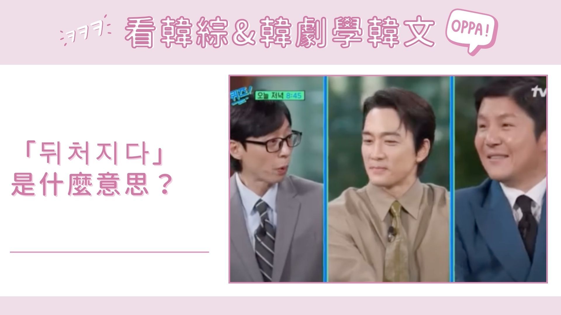 🙋🏻♀️안녕,여러분~我們來看一下不老男神宋承憲在節目中講到的뒤처지다是什麼意思吧!這次也一起整理了一個真的超~~~容易跟它搞混的單字給大家喔!趕快來看一下吧~