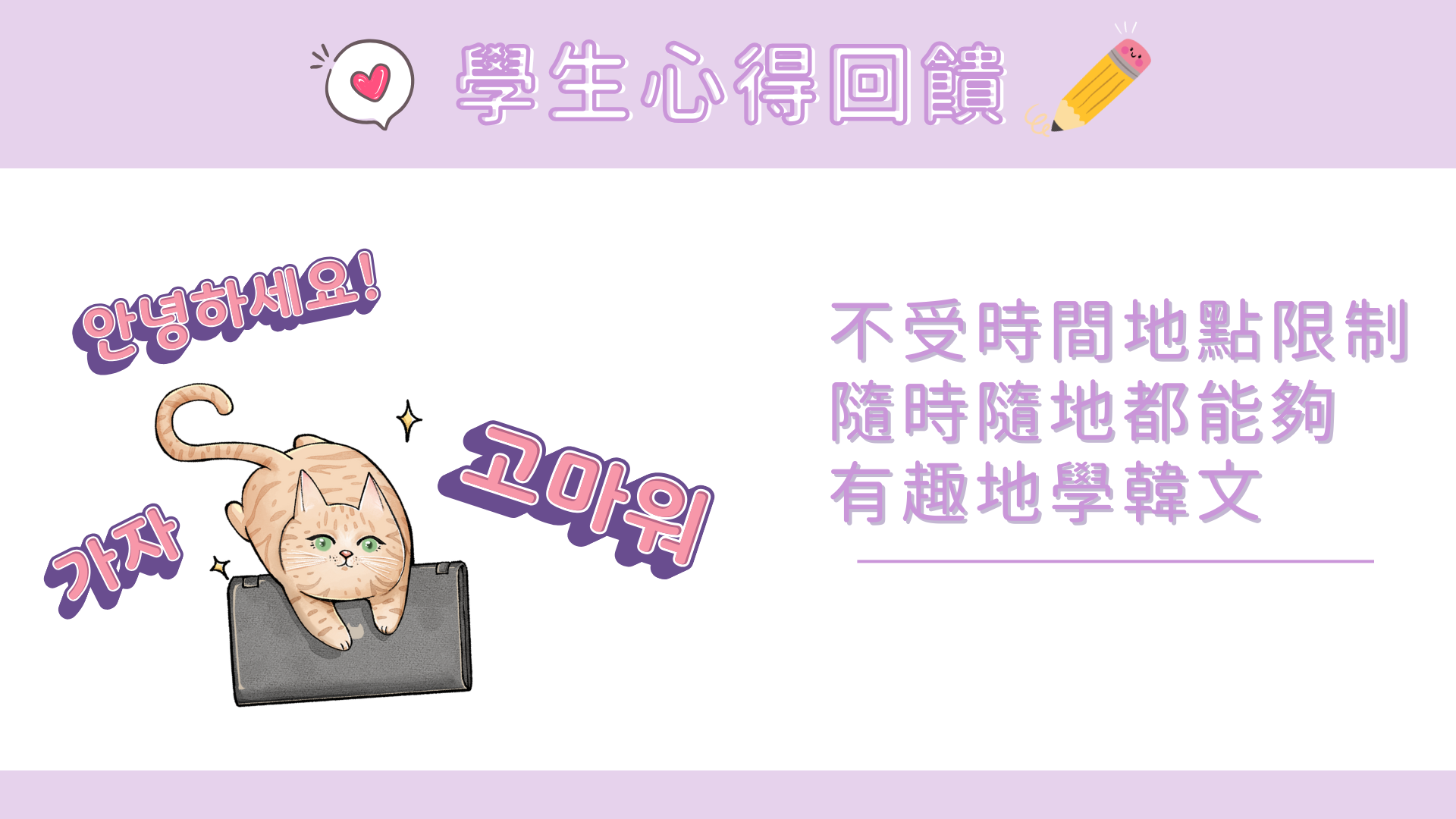 之後,我繼續報讀了四級課程。透過這些課程,我不僅提升了韓語能力,也對韓國文化有了更深的了解。阿敏老師在課堂上,不僅教授韓文,還會分享她在韓國生活中所體驗到的各種趣事,讓學習的過程更加豐富有趣。我非常期待阿敏老師未來的新課程,也希望能繼續透過這樣的方式持續精進我的韓語能力!”