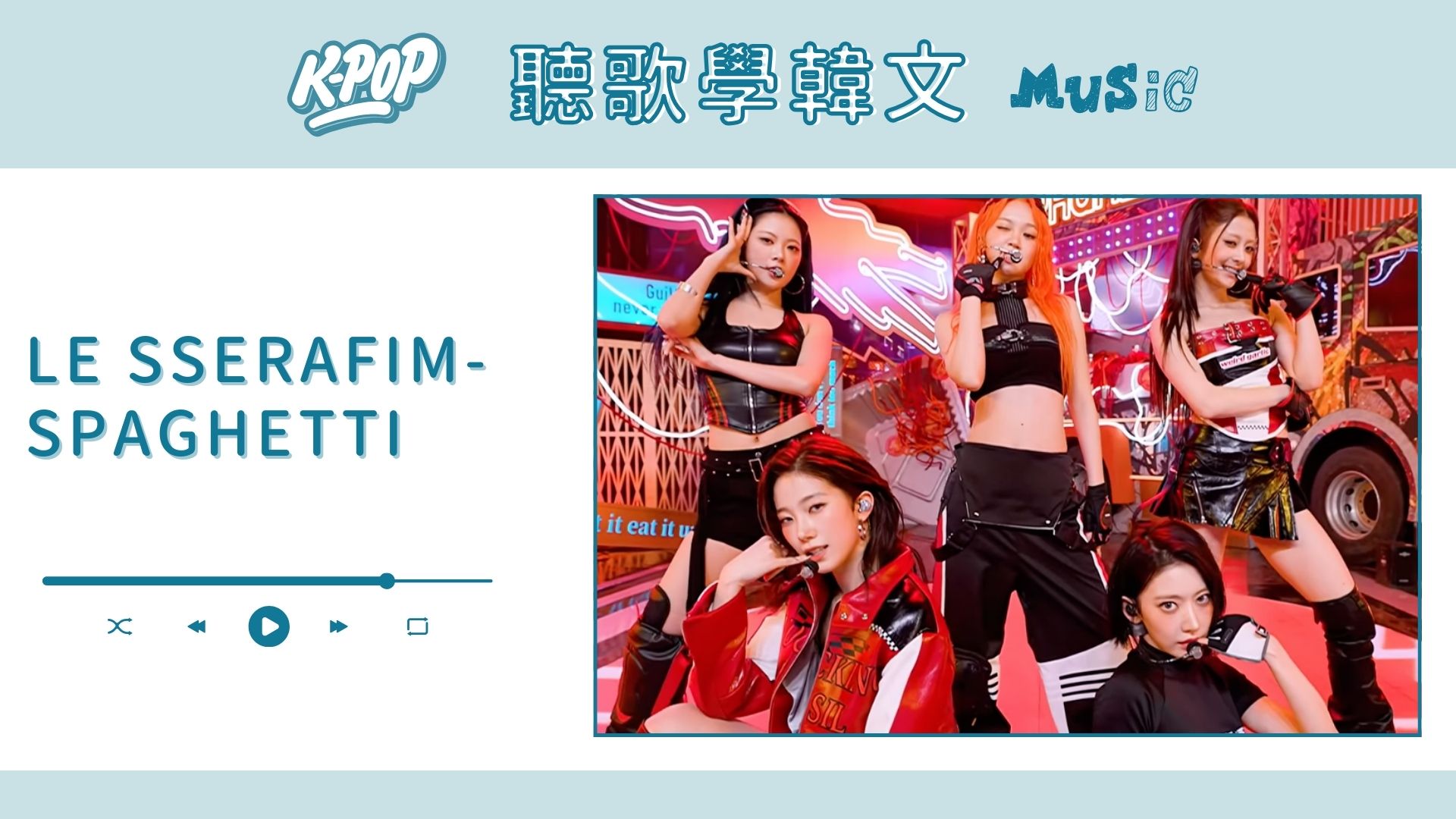 韓國女團 LE SSERAFIM 最近大勢回歸啦~這首〈SPAGHETTI〉真的好好聽,而且副歌也太洗腦了吧 💕 歌曲中出現很多初級韓文單字還有日常文法,大家快多聽幾次,一定會對副歌出現的韓文很有印象的 😆