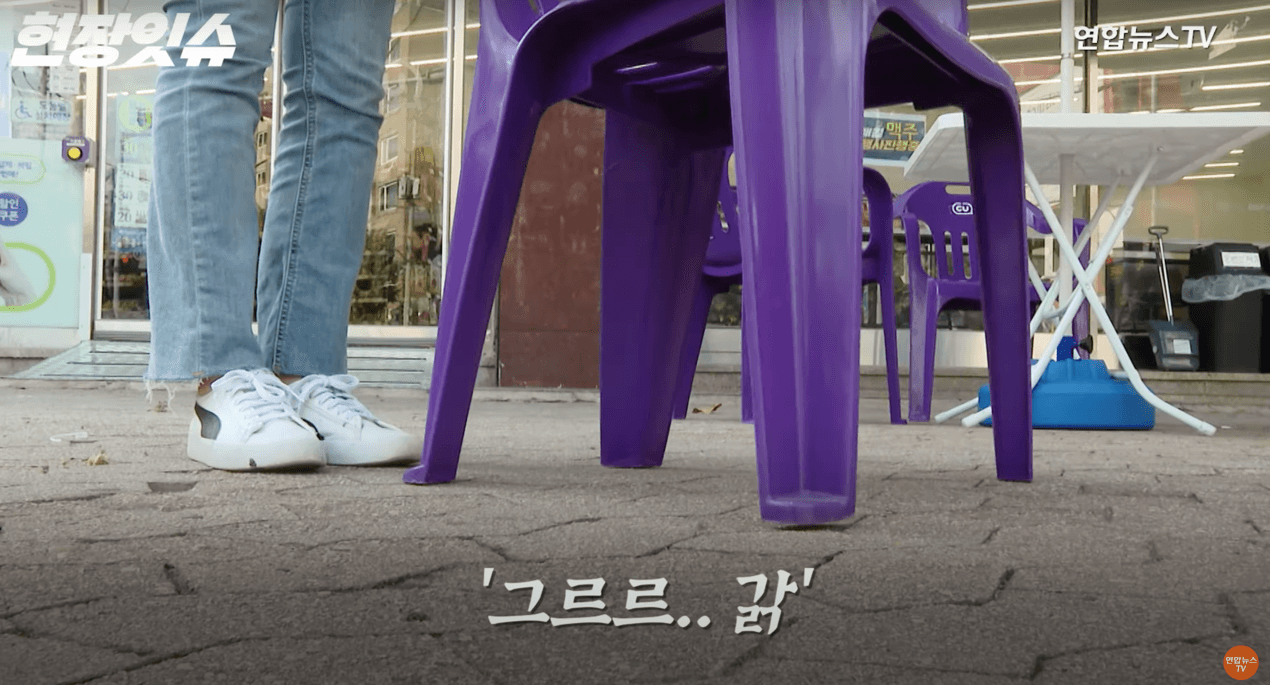 「그르르갉」是韓國MZ世代最新的流行語,指的是擺放在便利商店外的塑膠椅!그르르...是拉動椅子時發出的聲音,至於갉則是放下椅子時,發出的那一聲「嗒」。