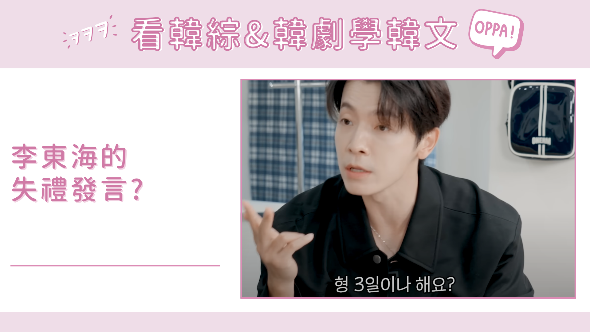 影視韓語影視韓語|李東海的失禮發言?2024-12-15Yunnie 由東海&銀赫主持的《要來這邊嗎2》這次邀請到嘻哈團體EPIK HIGH來作客,由於雙方實在太熟,不斷互虧、吐槽,整集節目笑點不斷!尤其是東海的「失禮發言」有夠經典,聽到EPIK HIGH要連開三天演唱會反應超驚訝,讓EPIK HIGH瞬間爆氣,場面一片混亂,實在是太有趣了!🤣 本篇單字: 아이돌 偶像 후배 後輩 차려입다 穿得正式 스케줄 行程、行程表 버티다 撐 쓰러지다 暈倒 재정적 財務 비하 貶低 N(이)나 多達~ #看韓綜學韓文#韓語單字