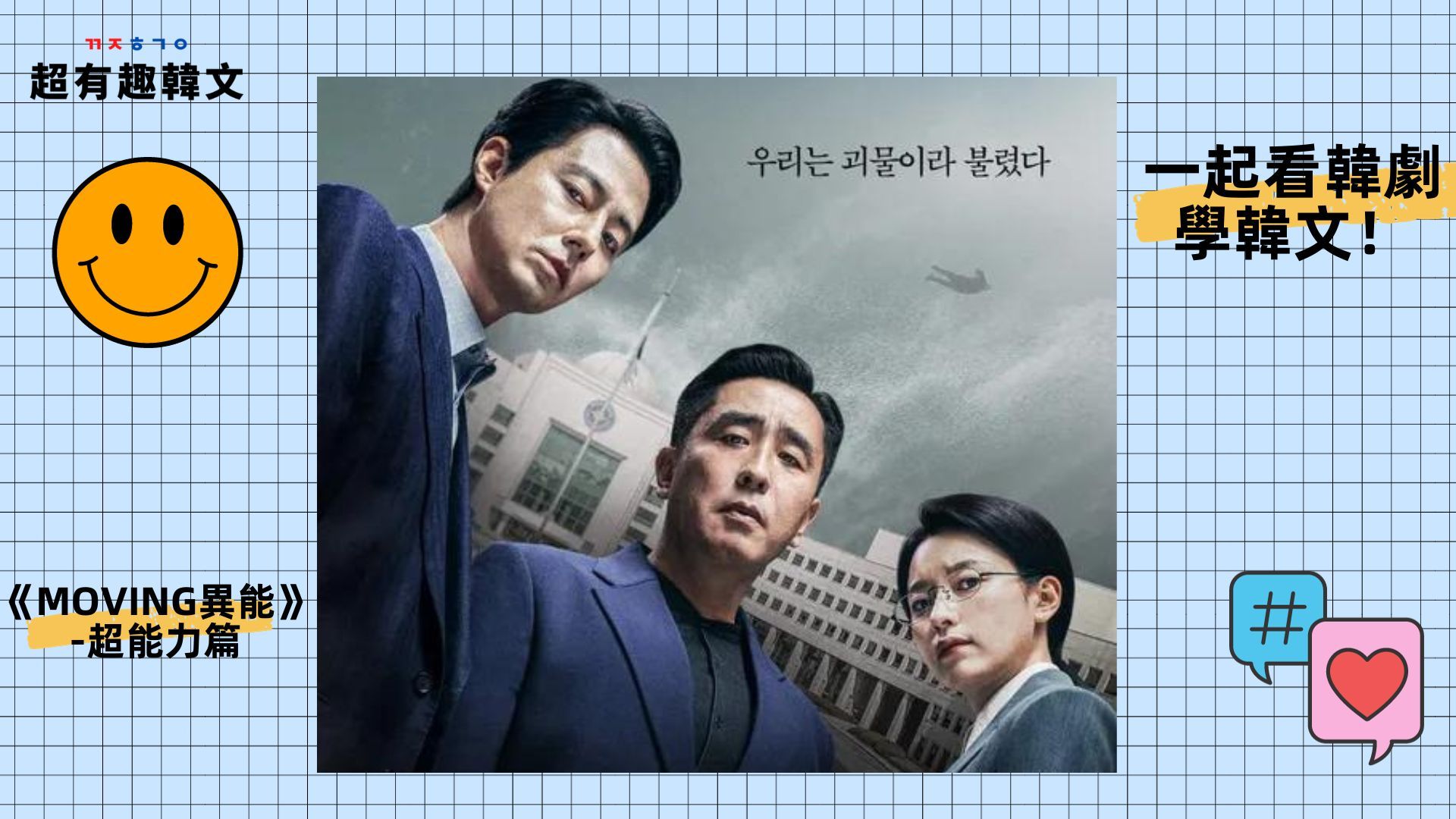 先前介紹了Disney+《Moving異能》的相關單字,今天我們整理了主角群的超能力要和大家分享!這部的主角各個身懷絕技,不僅能飛上高空、力大無窮,甚至還能無限再生,而他們也都憑藉著這些異能當上國情院的特務,趕緊來看看這些超能力的韓文怎麼說吧!