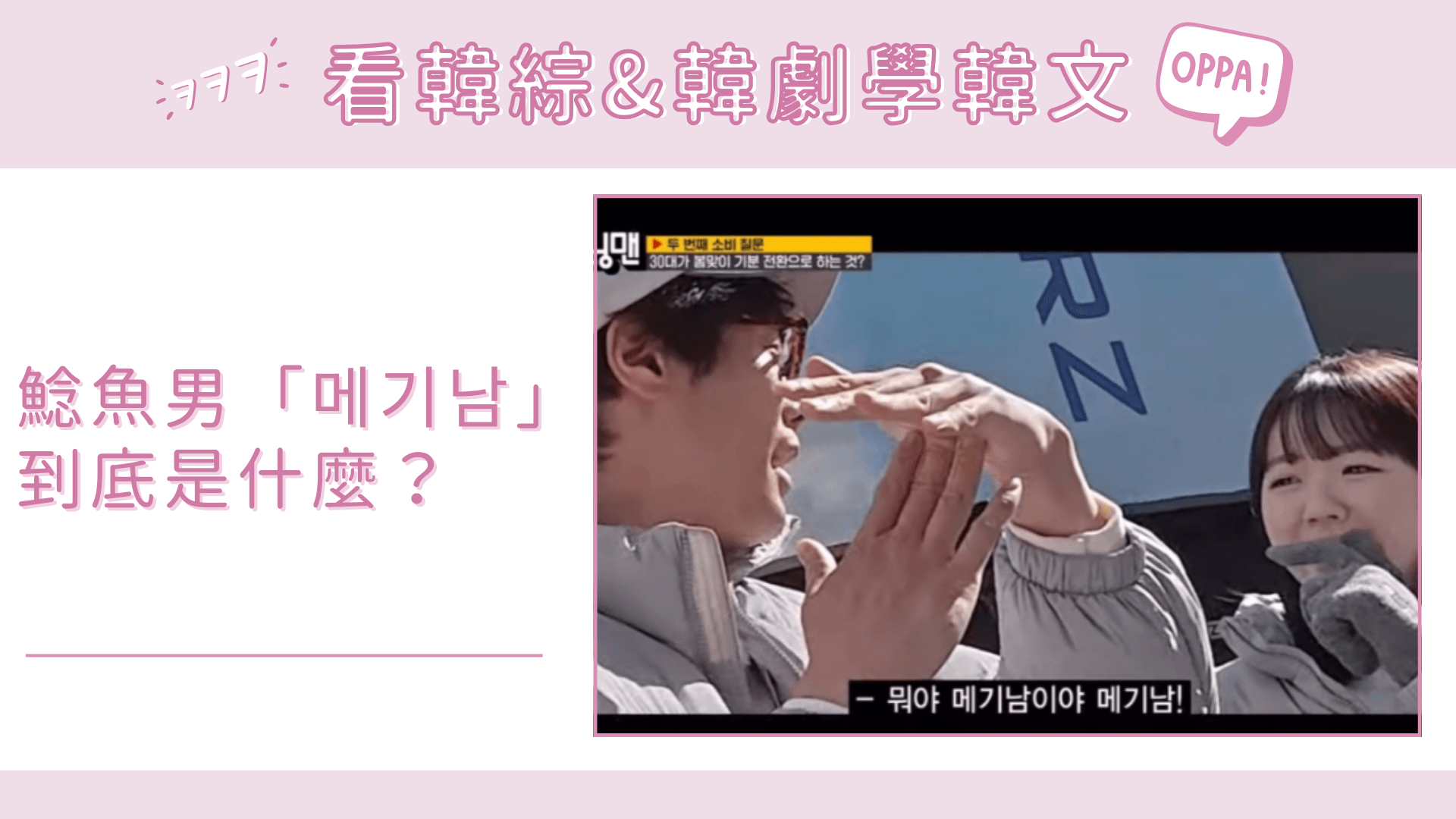 🙋🏻♀️안녕,여러분~近幾年其實在戀綜中時常被提到的『메기남』大家都知道是什麼意思嗎?直譯的話是『鯰魚男』,聽起來好像不是很帥氣哈哈!但其實他的意思是指