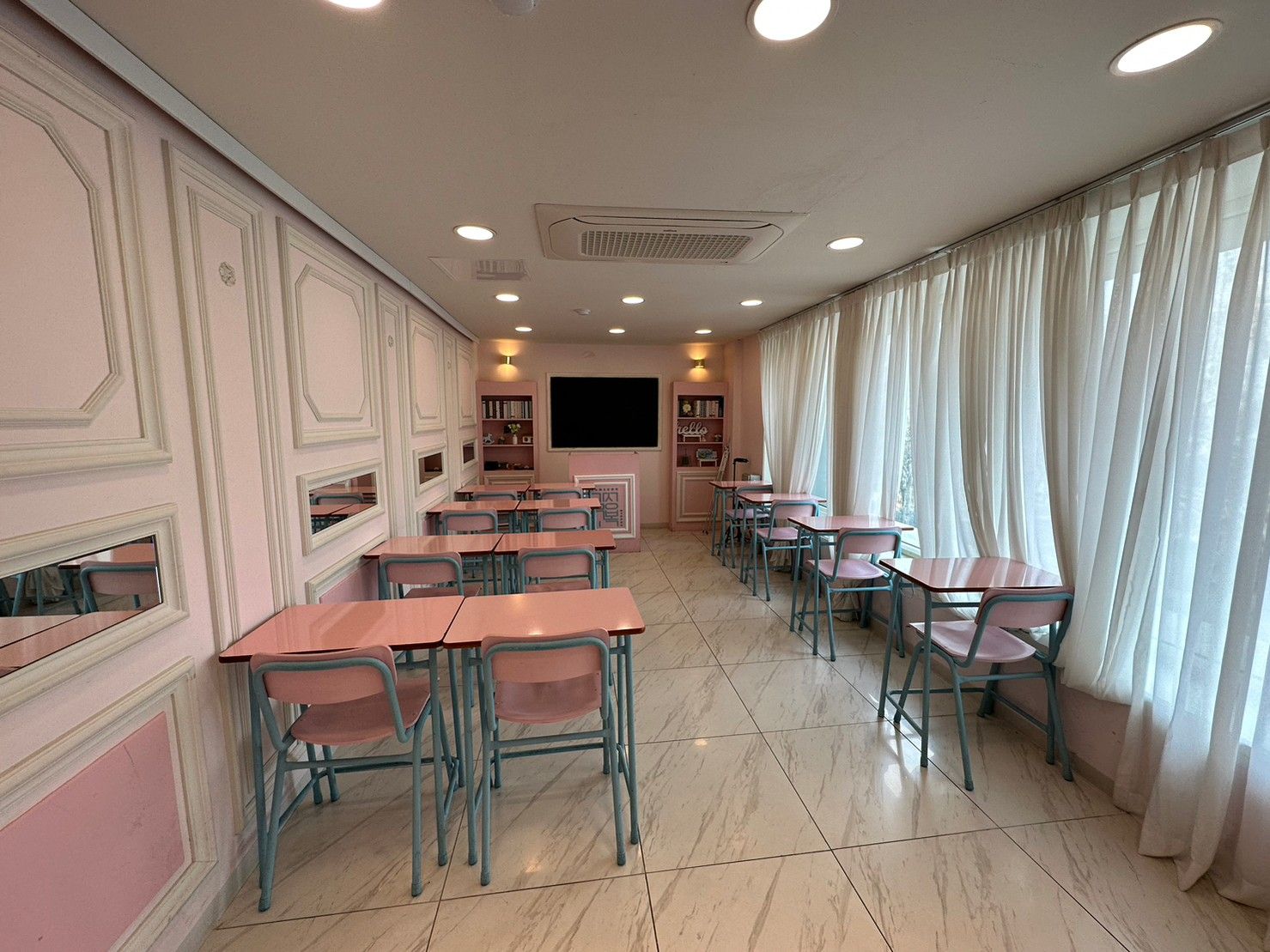 教室後面的背板也很好看!佈景一點也不馬虎!在這裡真的會少女心噴發~
